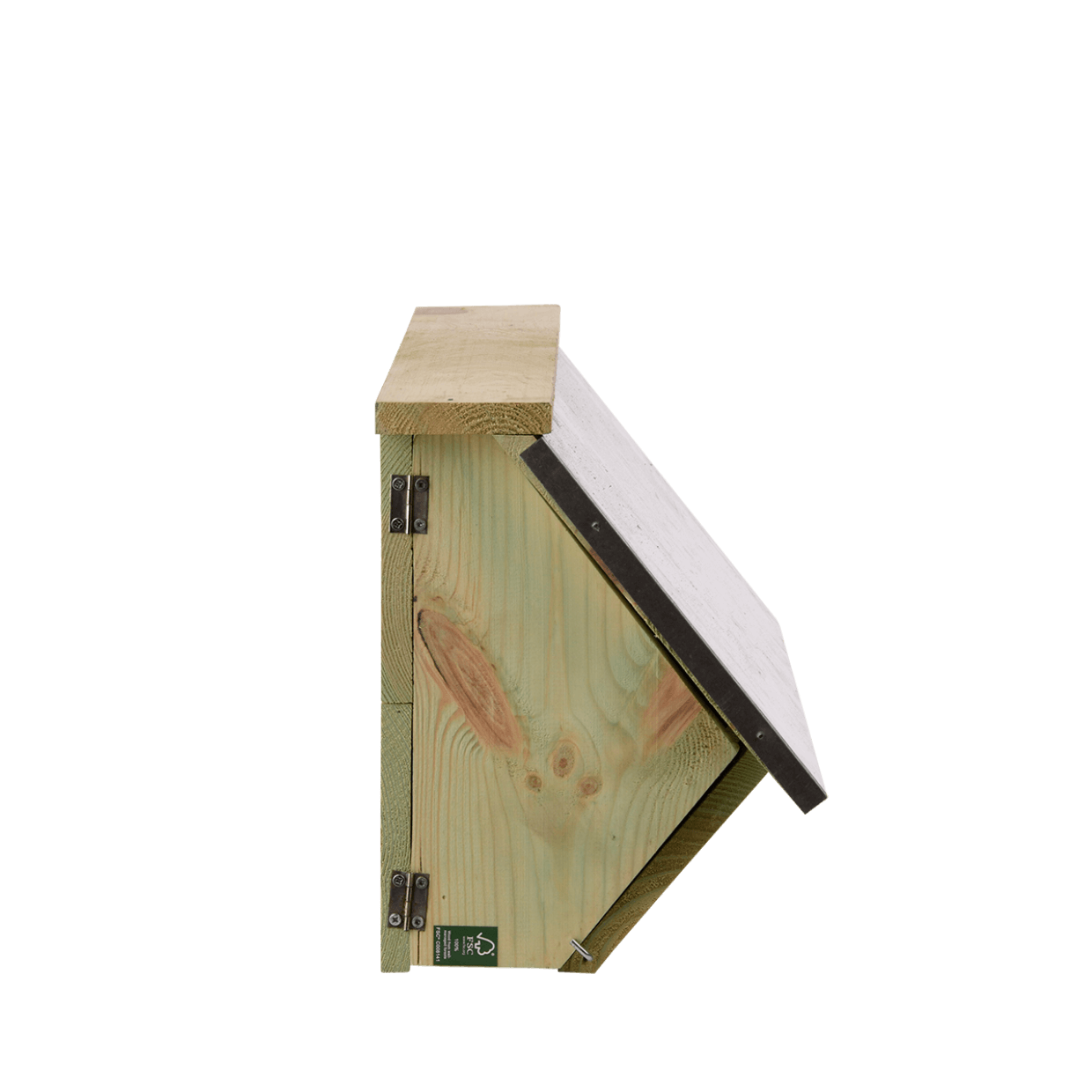 Deze nestkast is speciaal ontworpen om de unieke gierzwaluw te ondersteunen, aangezien hun natuurlijke nestplekken door verstedelijking verdwijnen. De nestkast is gemaakt van FSC-gecertificeerd vurenhout, met een aflopend zinken dak dat beschermt tegen regen. De kast heeft een invliegopening in halve maanvorm (6 cm breed), ideaal voor gierzwaluwen. Een zijdeur vergemakkelijkt het schoonmaken, terwijl ophangogen aan de achterkant een eenvoudige installatie mogelijk maken.