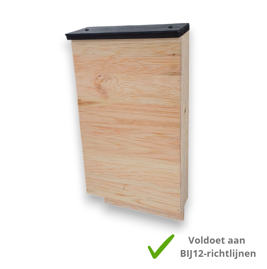 Deze vleermuiskast is speciaal ontwikkeld met de richtlijnen van BIJ12, voor de Gewone dwergvleermuis en de Ruige dwergvleermuis.